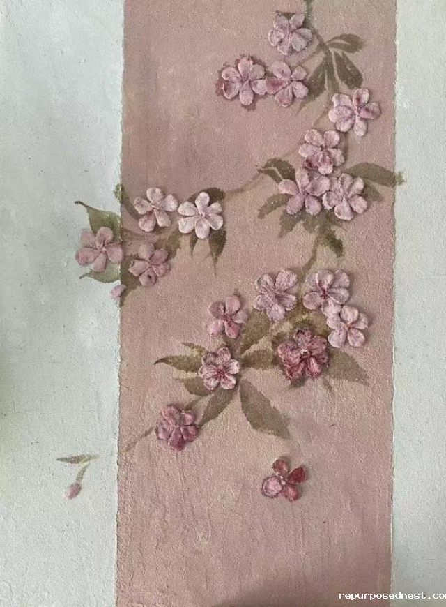 纸浆画与扭扭棒的结合,小女孩拖着一大束花。