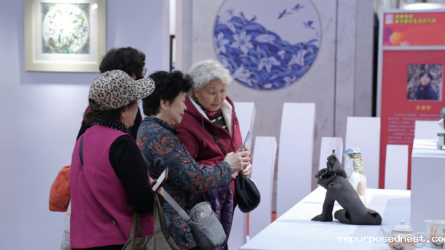 陶瓷爱好者驻足观赏